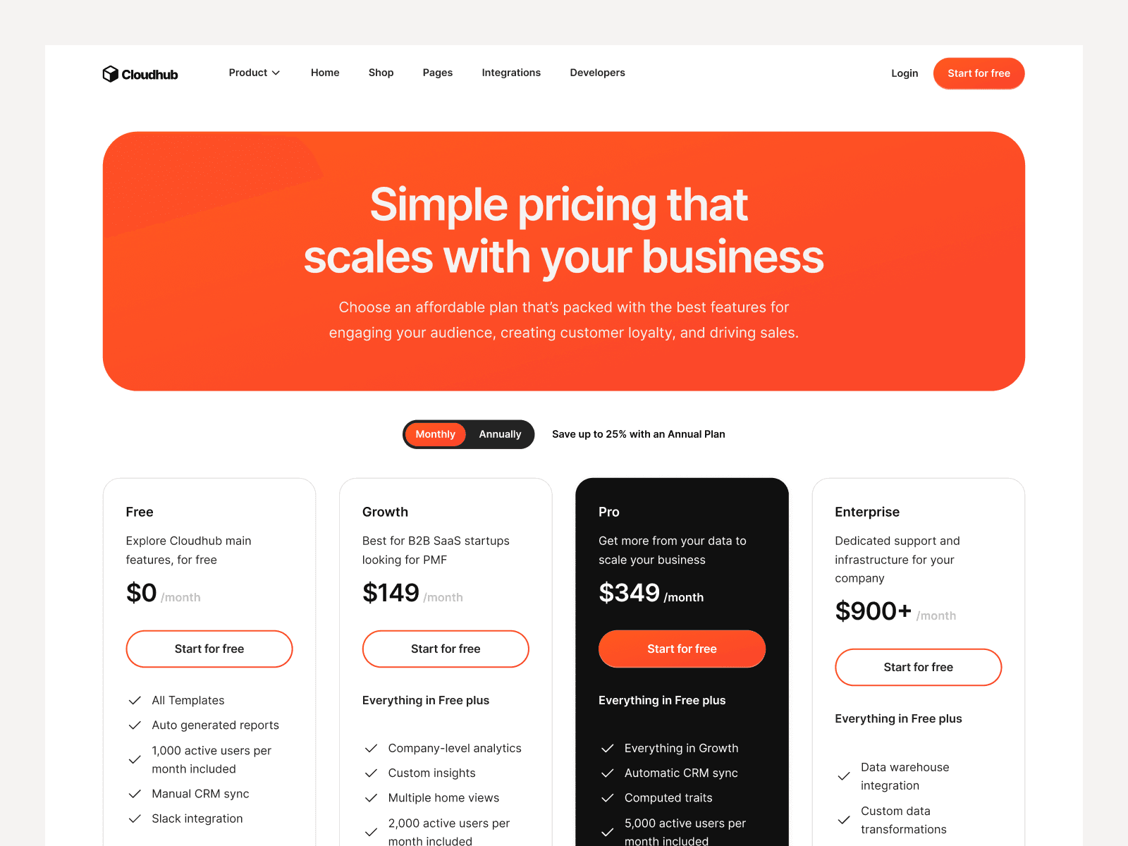 Cloudhub - SAAS Website Template