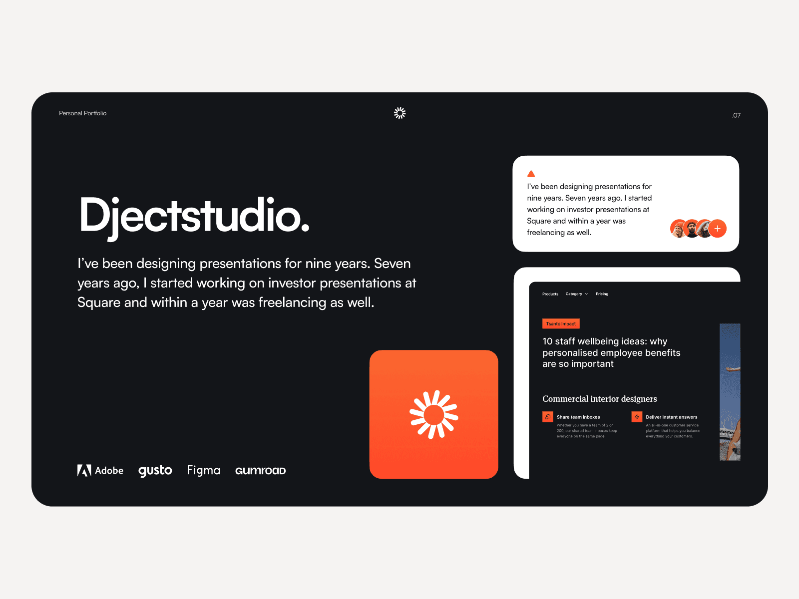A Figma presentation template for designers and creatives. Helps you present ideas with a confident narrative flow.