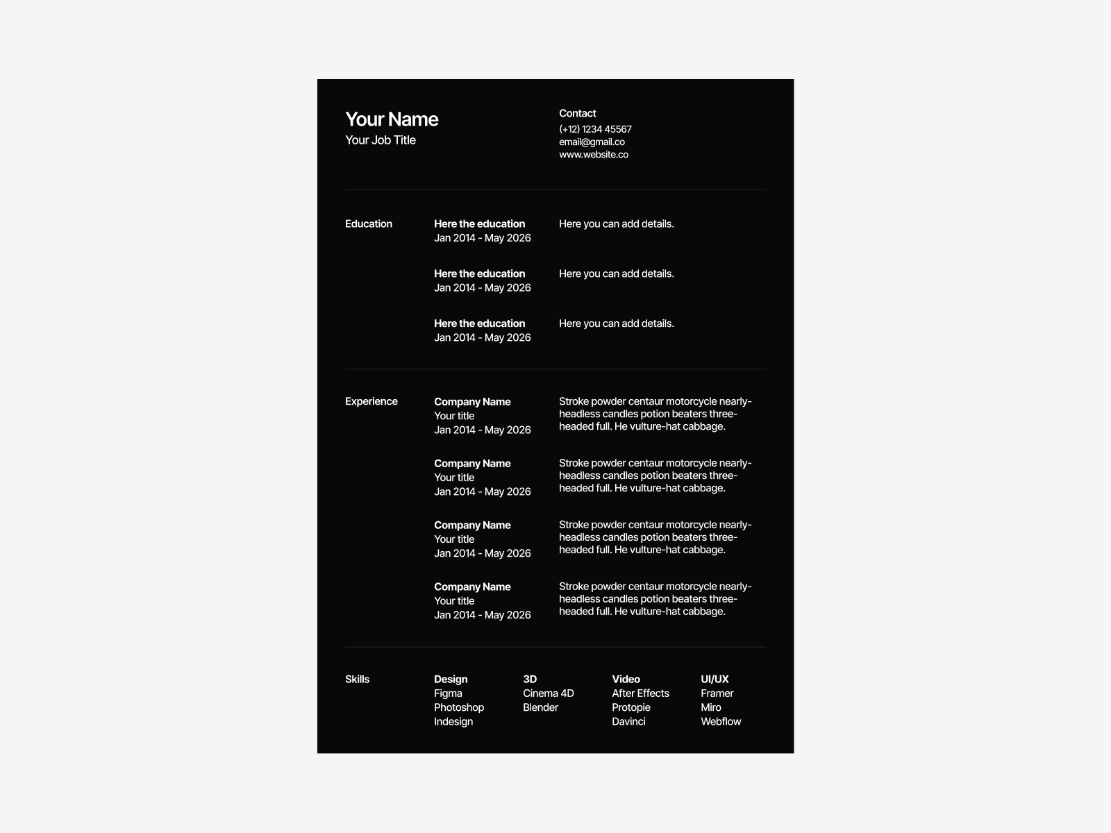 Free Resume Template - Resume Presentation Template is a Figma presentation template designed for professionals updating their cv. It provides a clean and structured layout that helps you present ideas with a confident narrative flow.