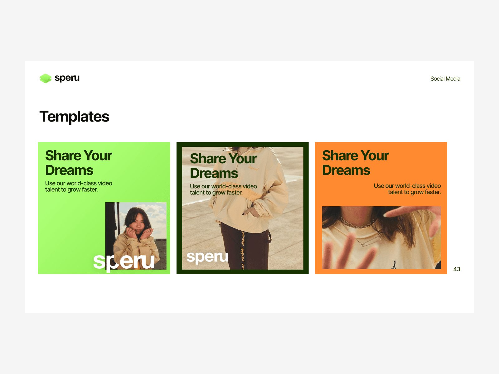 Speru Brand Identity Guidelines - Branding Presentation Template is a Figma presentation template designed for brands and creative studios. It provides a clean and structured layout that helps you present ideas with a confident narrative flow.